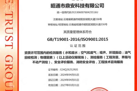 2003年11月10日,昭通市鼎安科技有限公司成立,初始主要從事第三方安全工程技術服務,經多年運營,發展為多專業綜合科技平臺,為社會提供多種專業技術服務工作。 現公司注冊資金為1200萬元,公司法定代表人:毛衛旭。公司主要業務:安全評價、安全標準化評審、安全工程技術服務;環境監測、職業衛生檢測、檢驗;法律訴訟及非訴訟服務;司法鑒定、固定資產投資項目節能服務;工程咨詢;工程測量測繪;安全教育培訓等。是安全生產服務、安全教育培訓機構,也是環境監測和職業衛生服務機構,同時也是綜合的檢測檢驗、綜合科技平臺服務機構。多年來為公、檢、法、司、軍、警、海關、仲裁、安監、工礦商貿企業、社會團體及個人提供多專業技術服務。